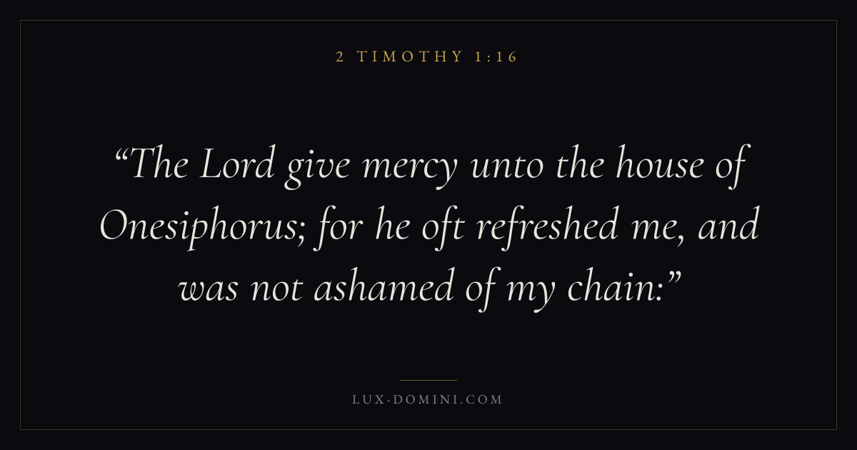 The Lord give mercy unto the house of Onesiphorus; for he oft refreshed me, and was not ashamed of my chain: