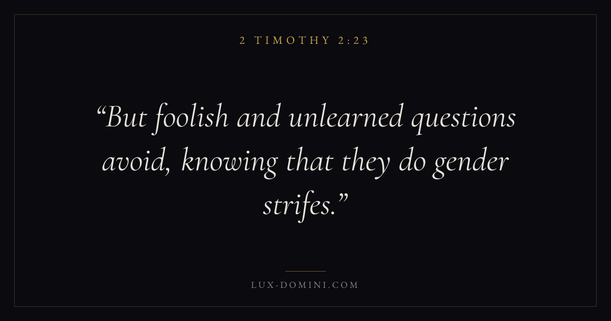 But foolish and unlearned questions avoid, knowing that they do gender strifes.