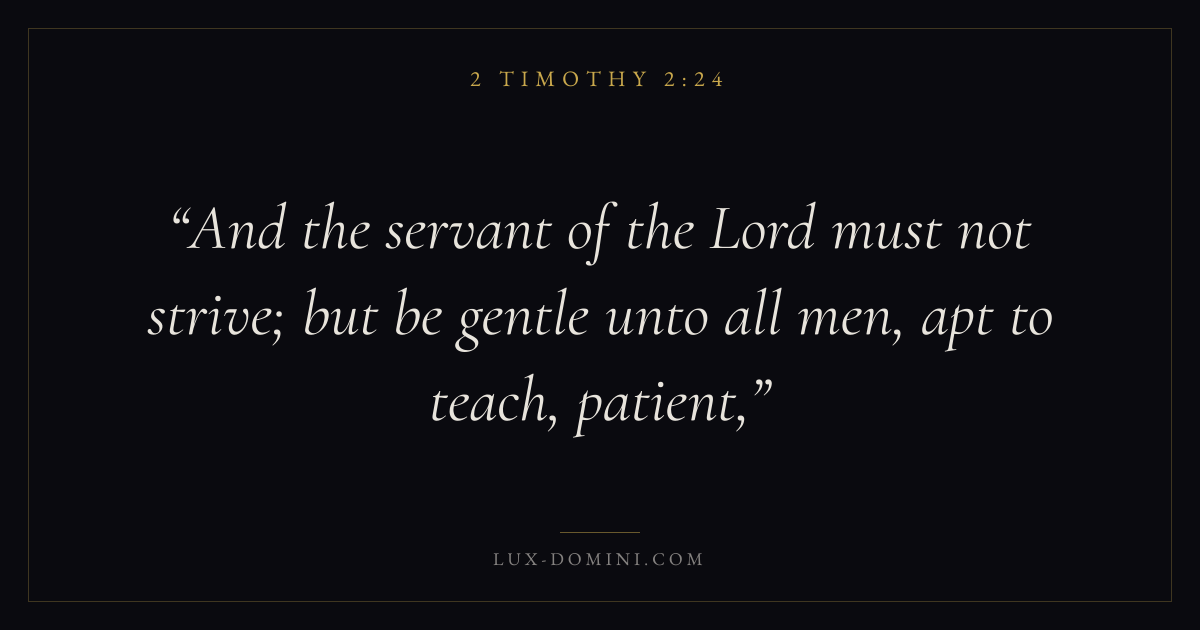 And the servant of the Lord must not strive; but be gentle unto all men, apt to teach, patient,