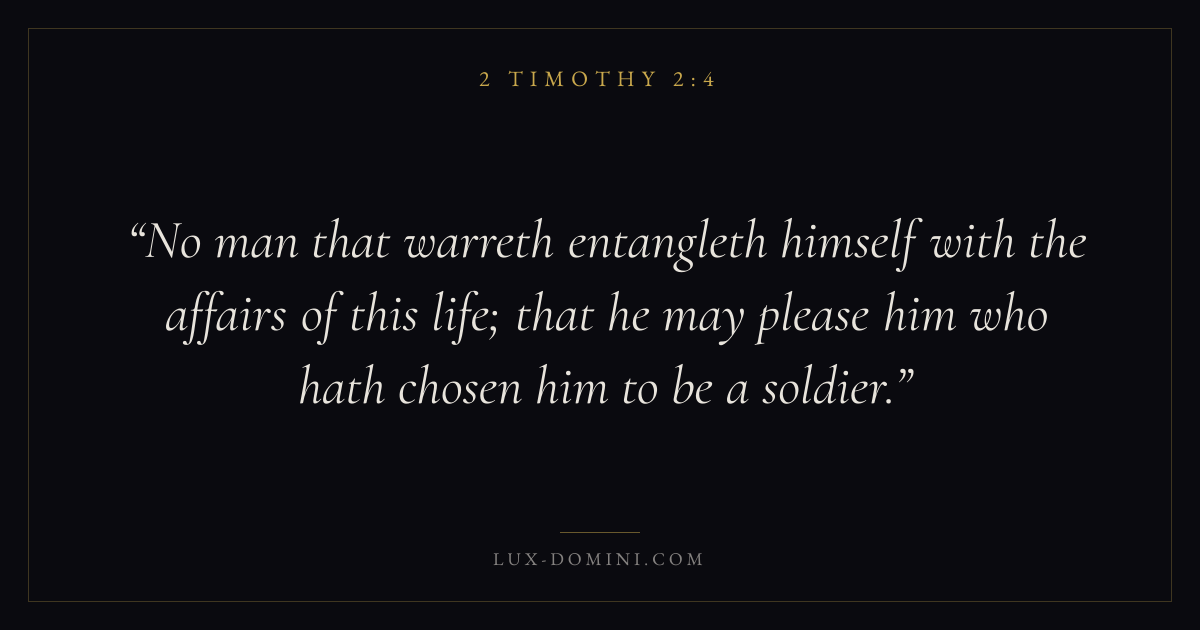 No man that warreth entangleth himself with the affairs of this life; that he may please him who hath chosen him to be a soldier.