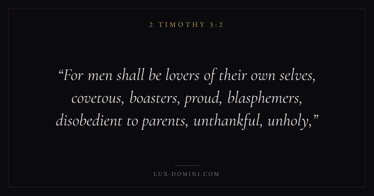 For men shall be lovers of their own selves, covetous, boasters, proud, blasphemers, disobedient to parents, unthankful, unholy,