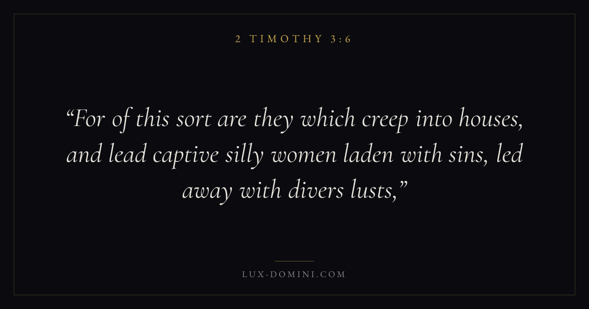 For of this sort are they which creep into houses, and lead captive silly women laden with sins, led away with divers lusts,