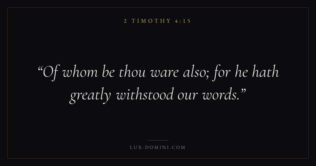 What does 2 Timothy 4:15 mean?