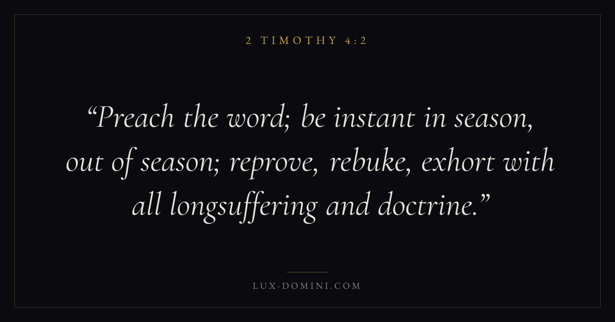 Preach the word; be instant in season, out of season; reprove, rebuke, exhort with all longsuffering and doctrine.