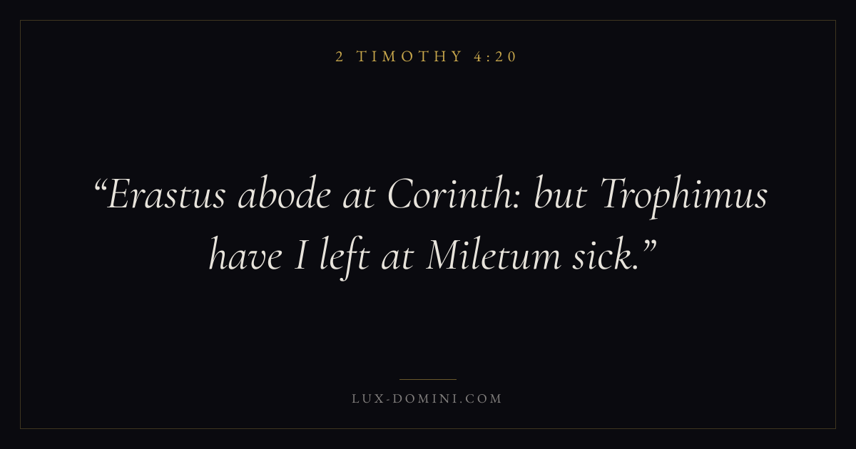 Erastus abode at Corinth: but Trophimus have I left at Miletum sick.
