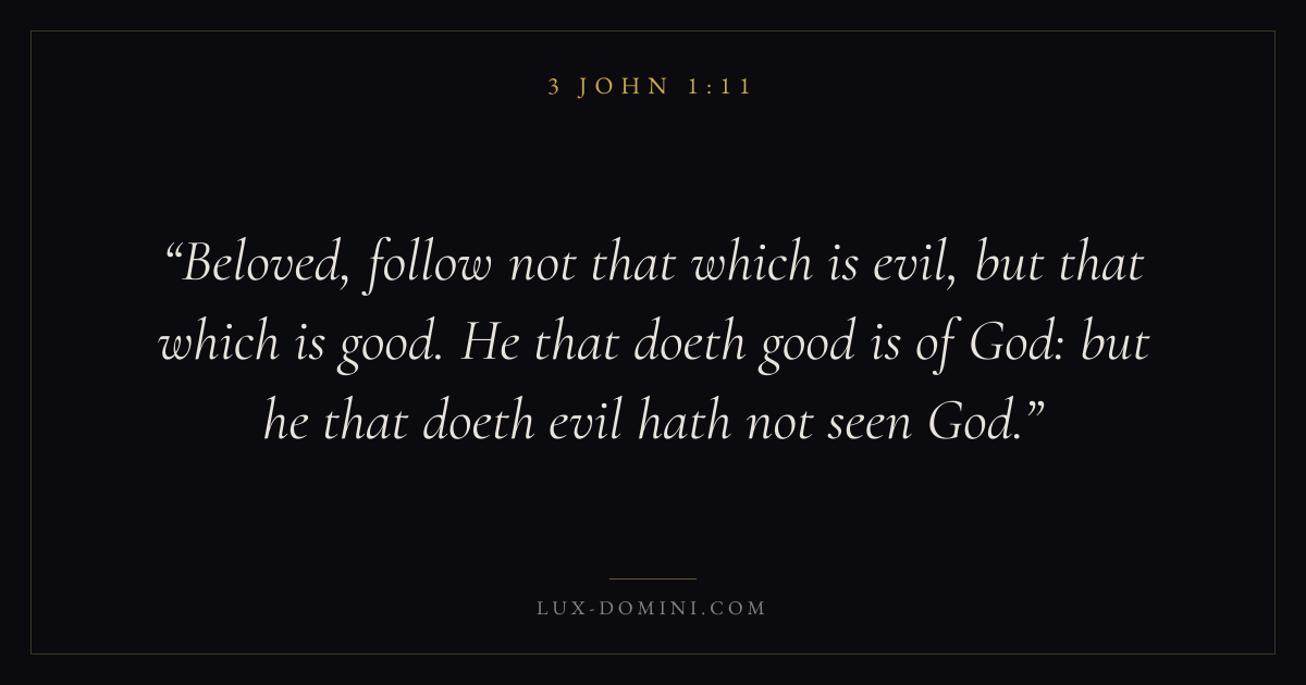 Beloved, follow not that which is evil, but that which is good. He that doeth good is of God: but he that doeth evil hath not seen God.