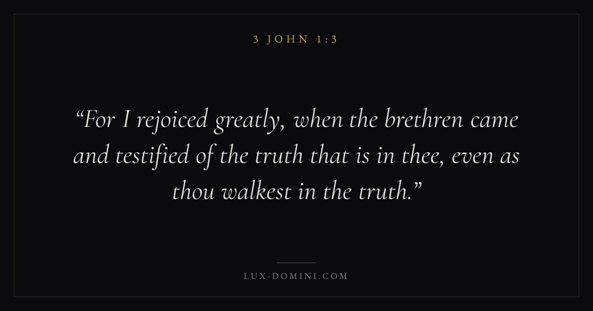 For I rejoiced greatly, when the brethren came and testified of the truth that is in thee, even as thou walkest in the truth.