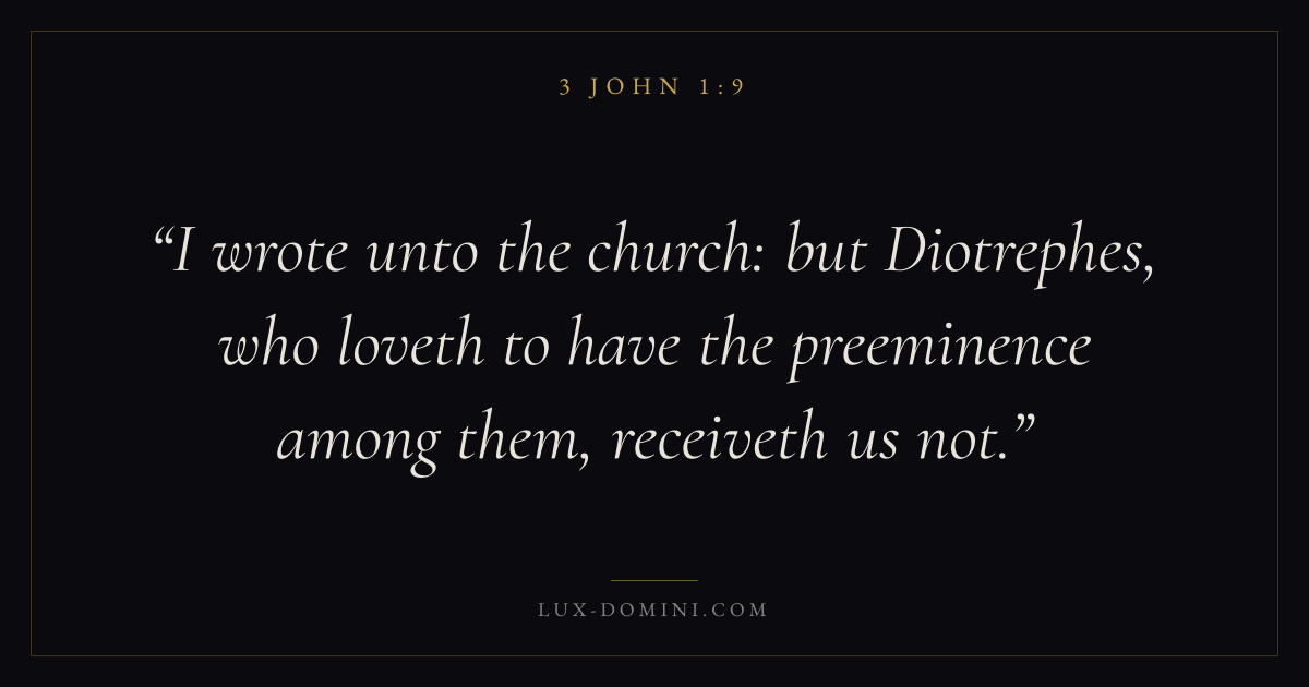 I wrote unto the church: but Diotrephes, who loveth to have the preeminence among them, receiveth us not.