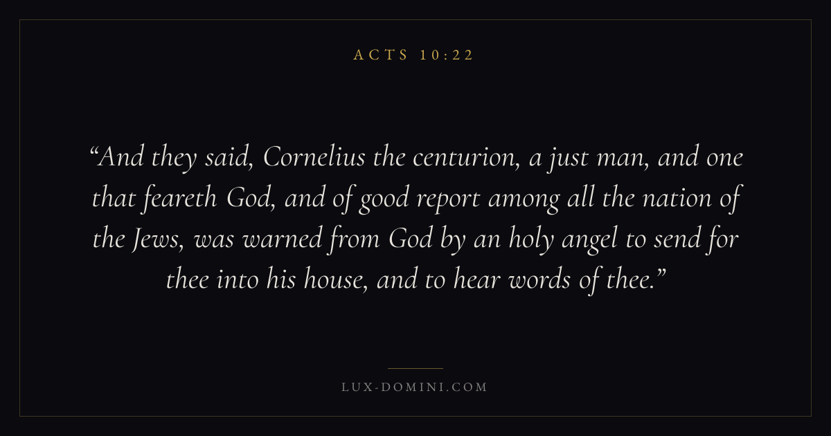 And they said, Cornelius the centurion, a just man, and one that feareth God, and of good report among all the nation of the Jews, was warned from God by an holy angel to send for thee into his house, and to hear words of thee.