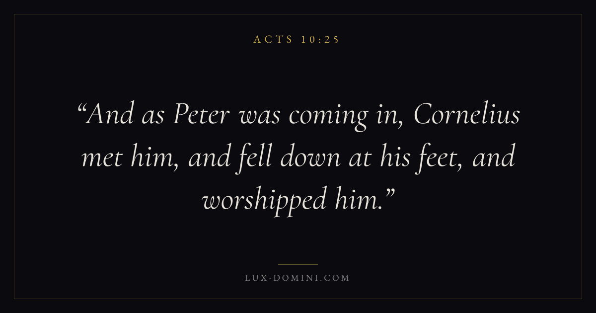 And as Peter was coming in, Cornelius met him, and fell down at his feet, and worshipped him.