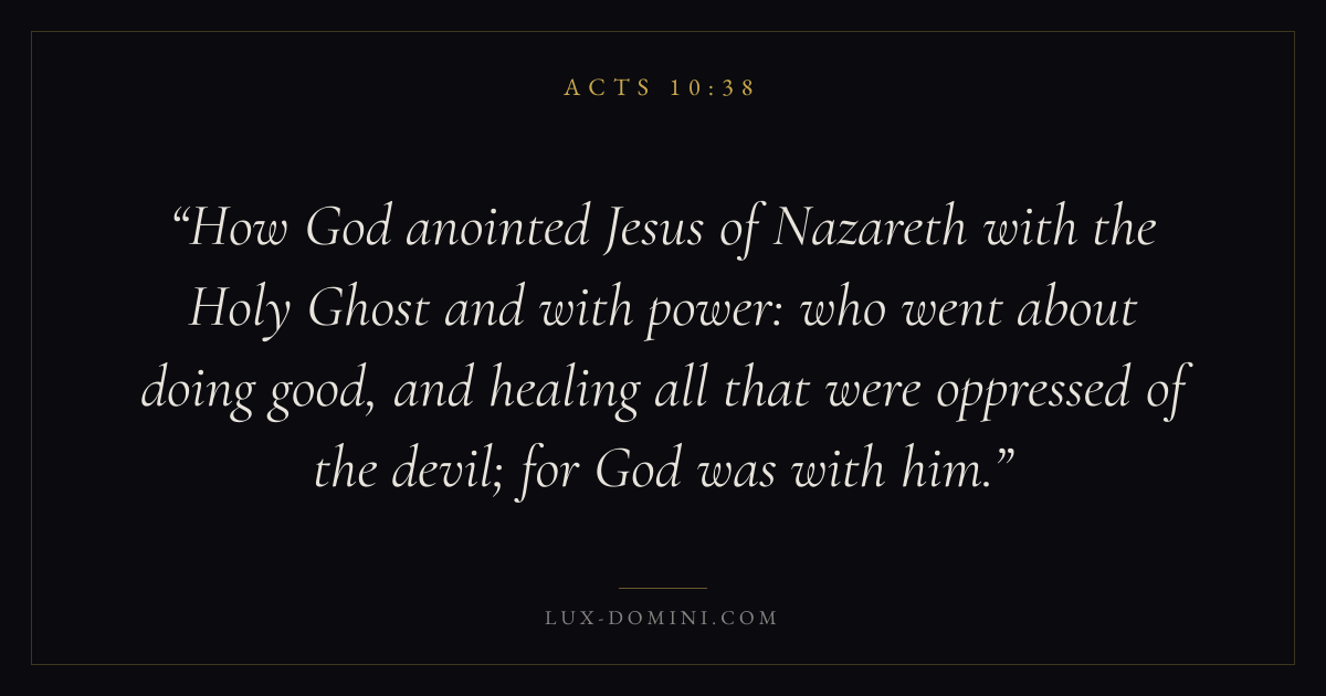 How God anointed Jesus of Nazareth with the Holy Ghost and with power: who went about doing good, and healing all that were oppressed of the devil; for God was with him.