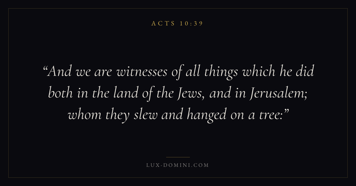 And we are witnesses of all things which he did both in the land of the Jews, and in Jerusalem; whom they slew and hanged on a tree:
