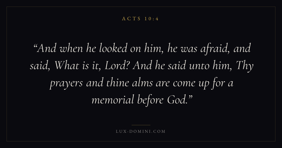 And when he looked on him, he was afraid, and said, What is it, Lord? And he said unto him, Thy prayers and thine alms are come up for a memorial before God.