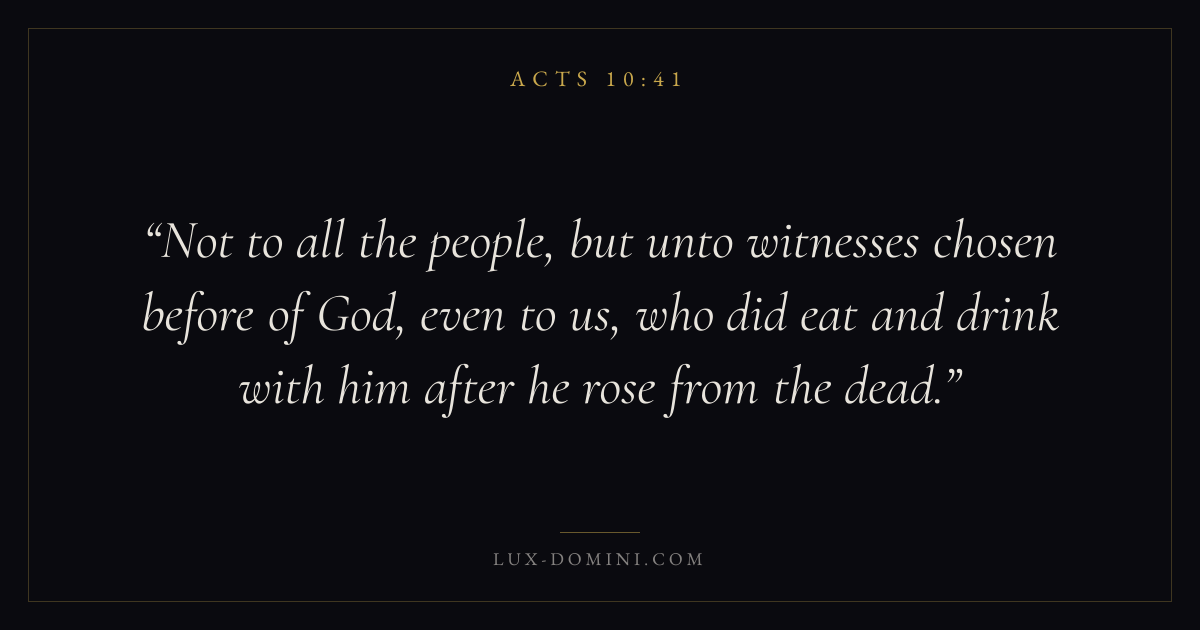Not to all the people, but unto witnesses chosen before of God, even to us, who did eat and drink with him after he rose from the dead.