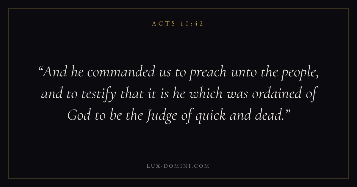 And he commanded us to preach unto the people, and to testify that it is he which was ordained of God to be the Judge of quick and dead.