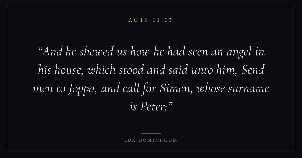 And he shewed us how he had seen an angel in his house, which stood and said unto him, Send men to Joppa, and call for Simon, whose surname is Peter;