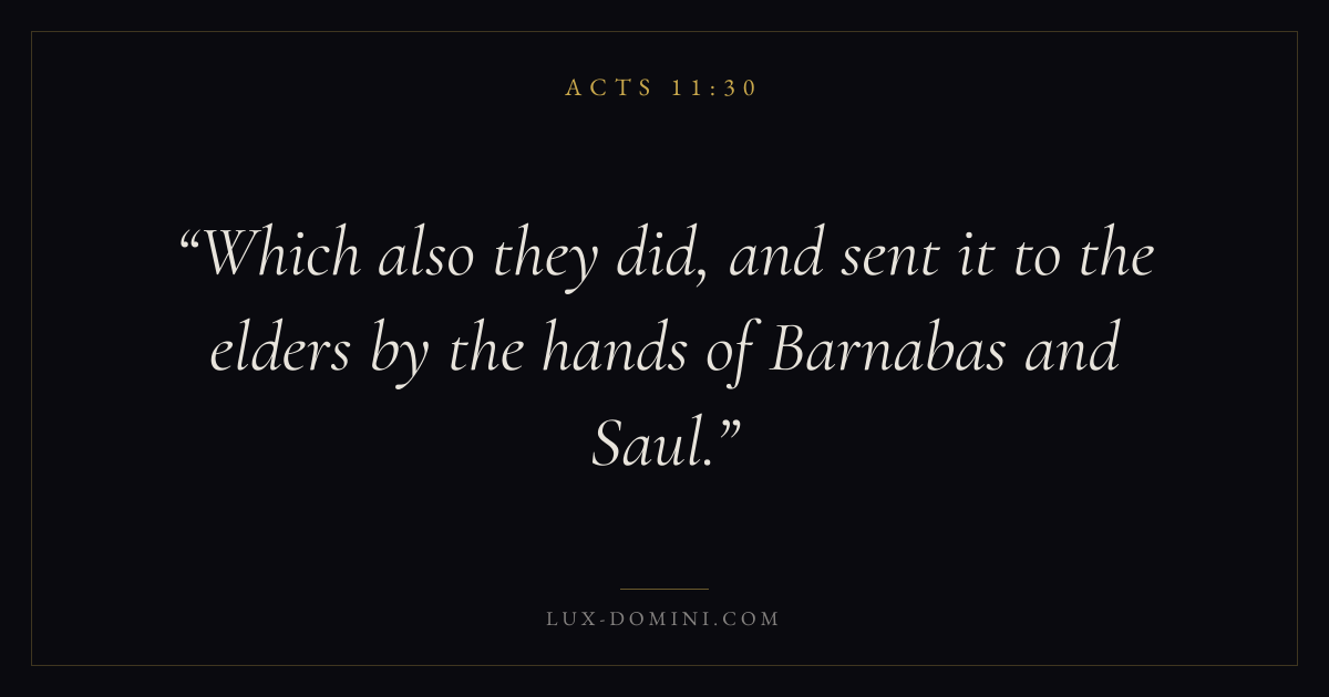 Which also they did, and sent it to the elders by the hands of Barnabas and Saul.