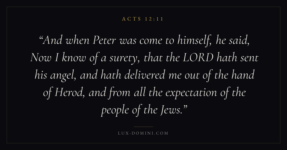 And when Peter was come to himself, he said, Now I know of a surety, that the LORD hath sent his angel, and hath delivered me out of the hand of Herod, and from all the expectation of the people of the Jews.