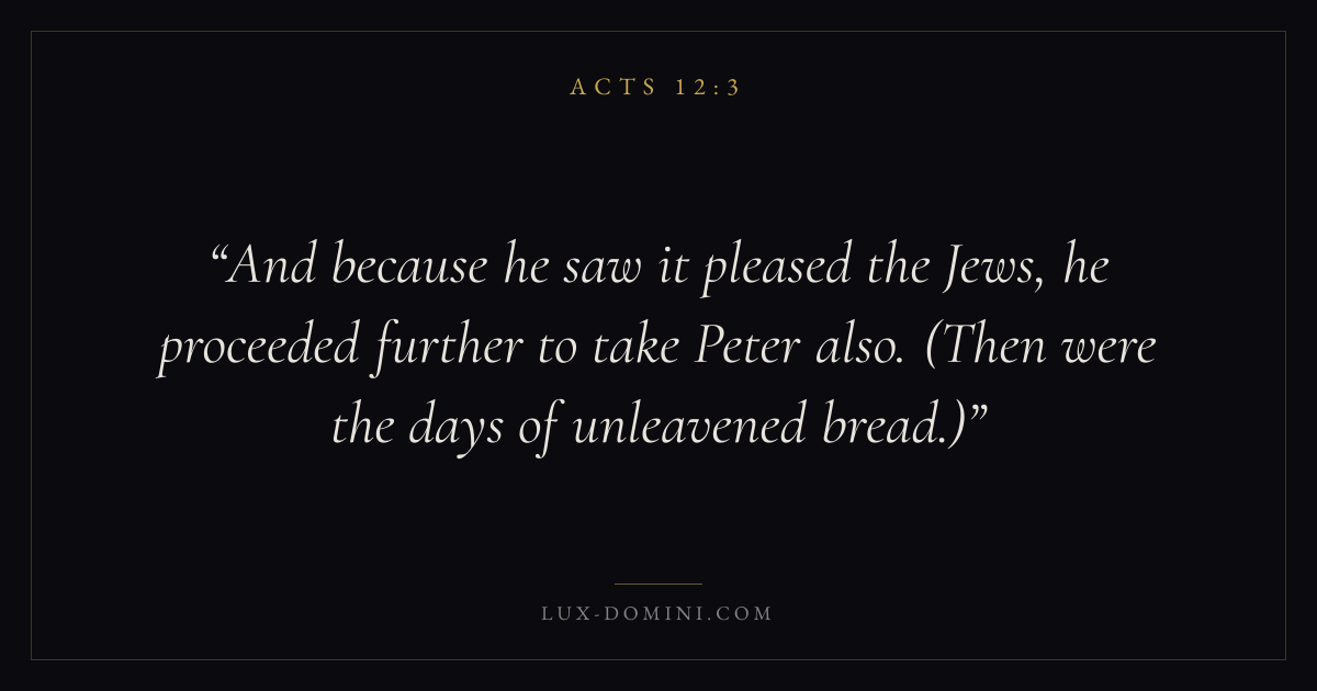 And because he saw it pleased the Jews, he proceeded further to take Peter also. (Then were the days of unleavened bread.)