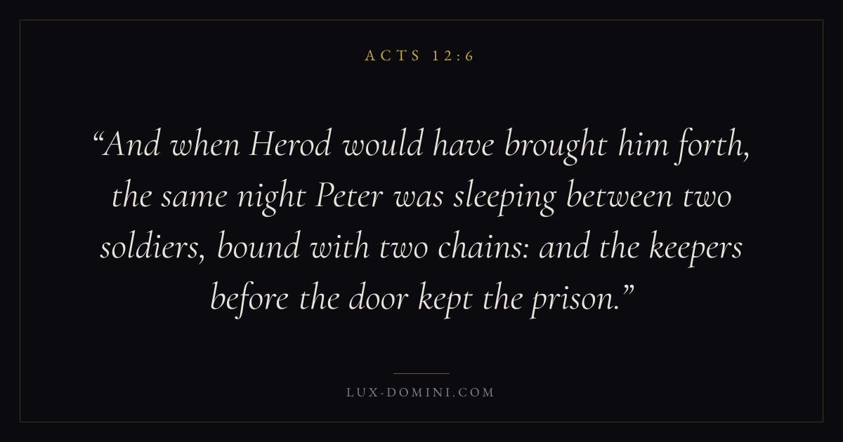 And when Herod would have brought him forth, the same night Peter was sleeping between two soldiers, bound with two chains: and the keepers before the door kept the prison.