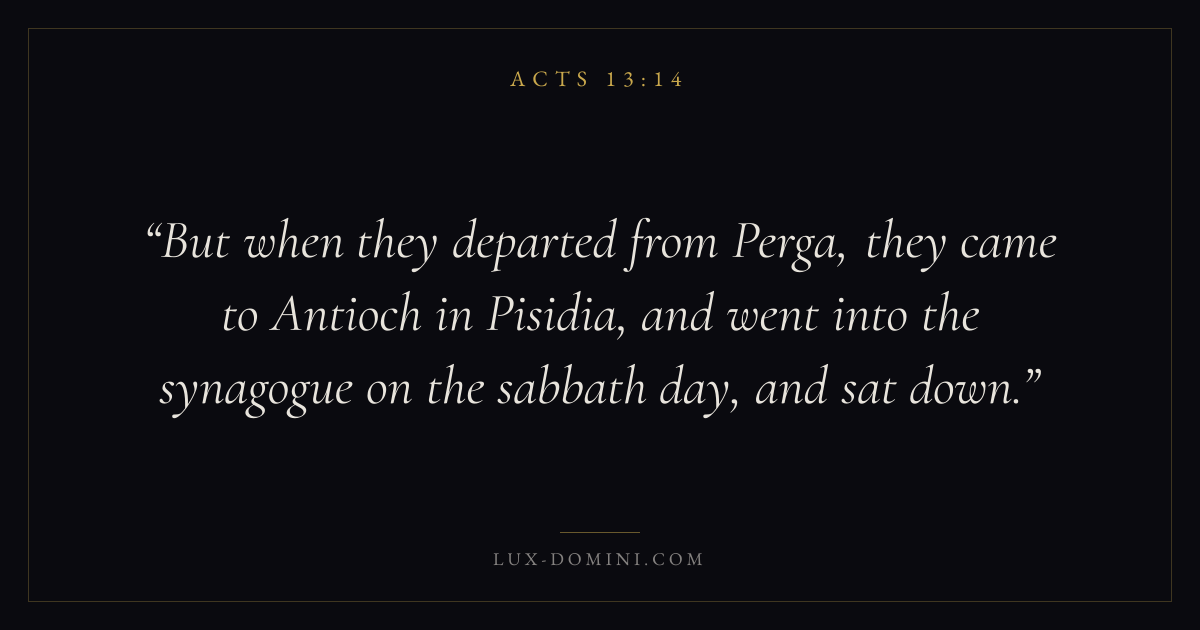 But when they departed from Perga, they came to Antioch in Pisidia, and went into the synagogue on the sabbath day, and sat down.