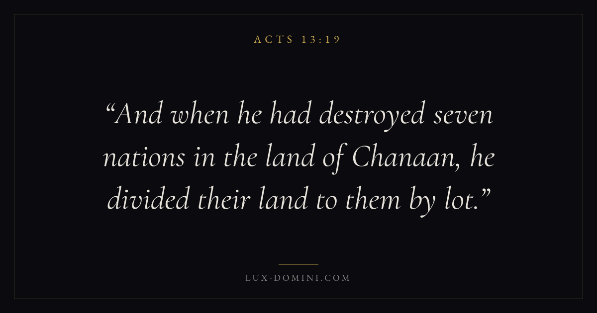 And when he had destroyed seven nations in the land of Chanaan, he divided their land to them by lot.