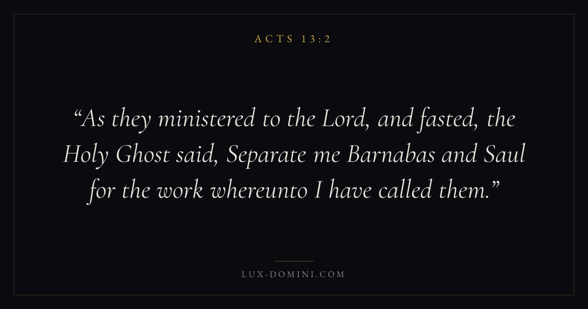 As they ministered to the Lord, and fasted, the Holy Ghost said, Separate me Barnabas and Saul for the work whereunto I have called them.