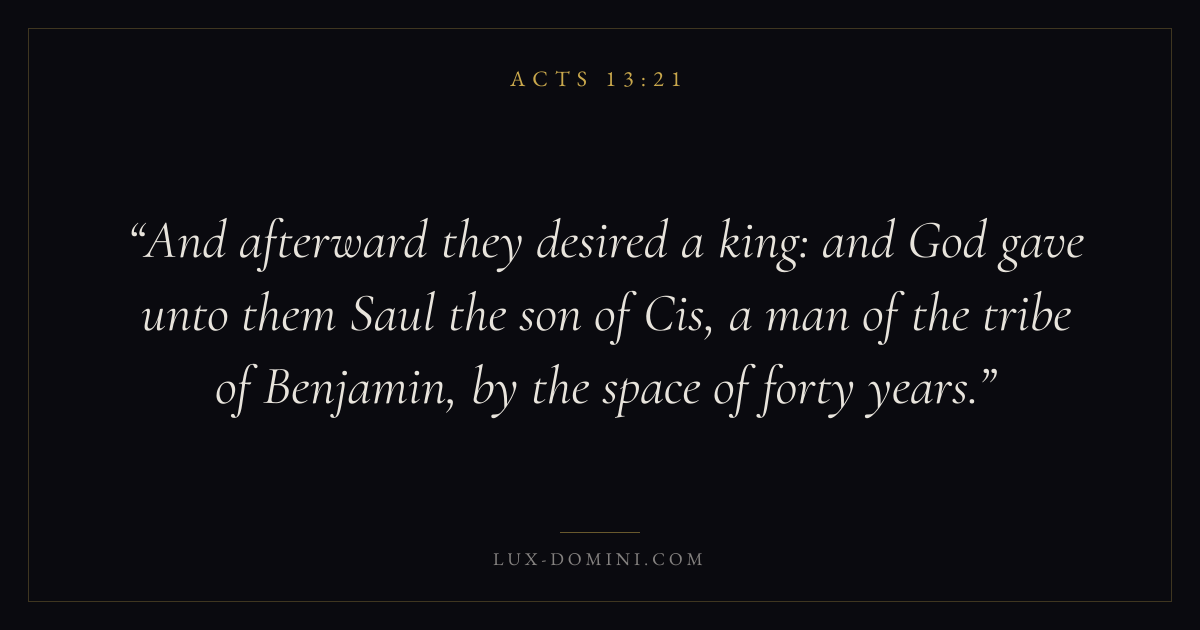 And afterward they desired a king: and God gave unto them Saul the son of Cis, a man of the tribe of Benjamin, by the space of forty years.