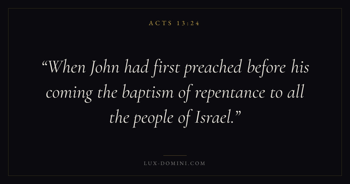 When John had first preached before his coming the baptism of repentance to all the people of Israel.