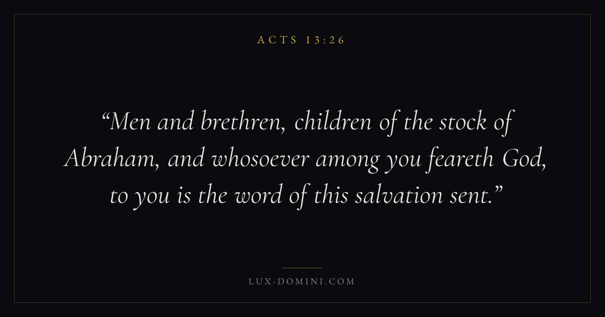 Men and brethren, children of the stock of Abraham, and whosoever among you feareth God, to you is the word of this salvation sent.