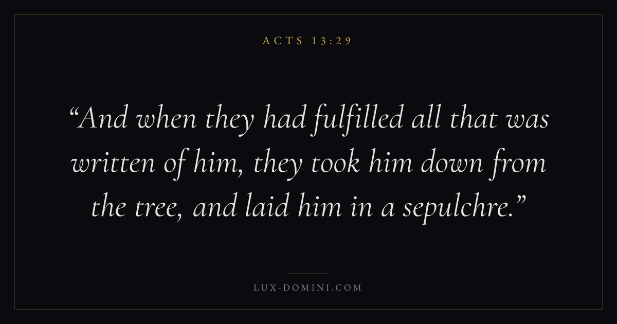 And when they had fulfilled all that was written of him, they took him down from the tree, and laid him in a sepulchre.