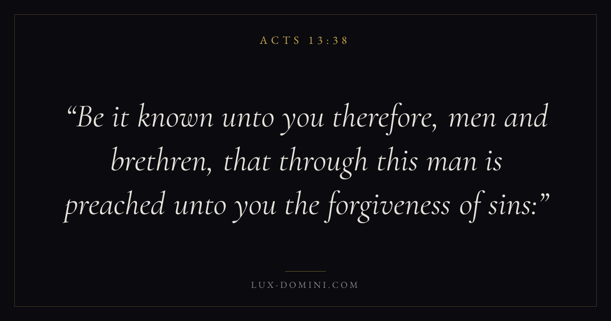 Be it known unto you therefore, men and brethren, that through this man is preached unto you the forgiveness of sins: