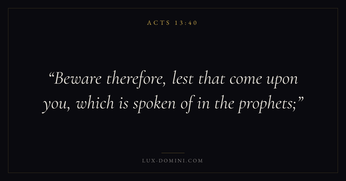 Beware therefore, lest that come upon you, which is spoken of in the prophets;