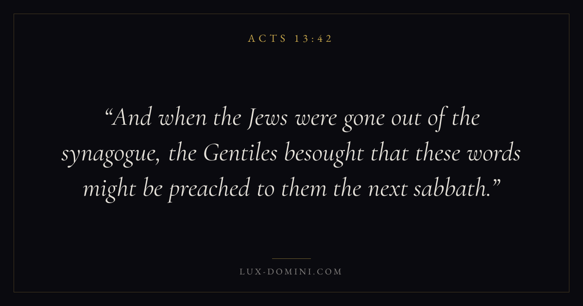 And when the Jews were gone out of the synagogue, the Gentiles besought that these words might be preached to them the next sabbath.