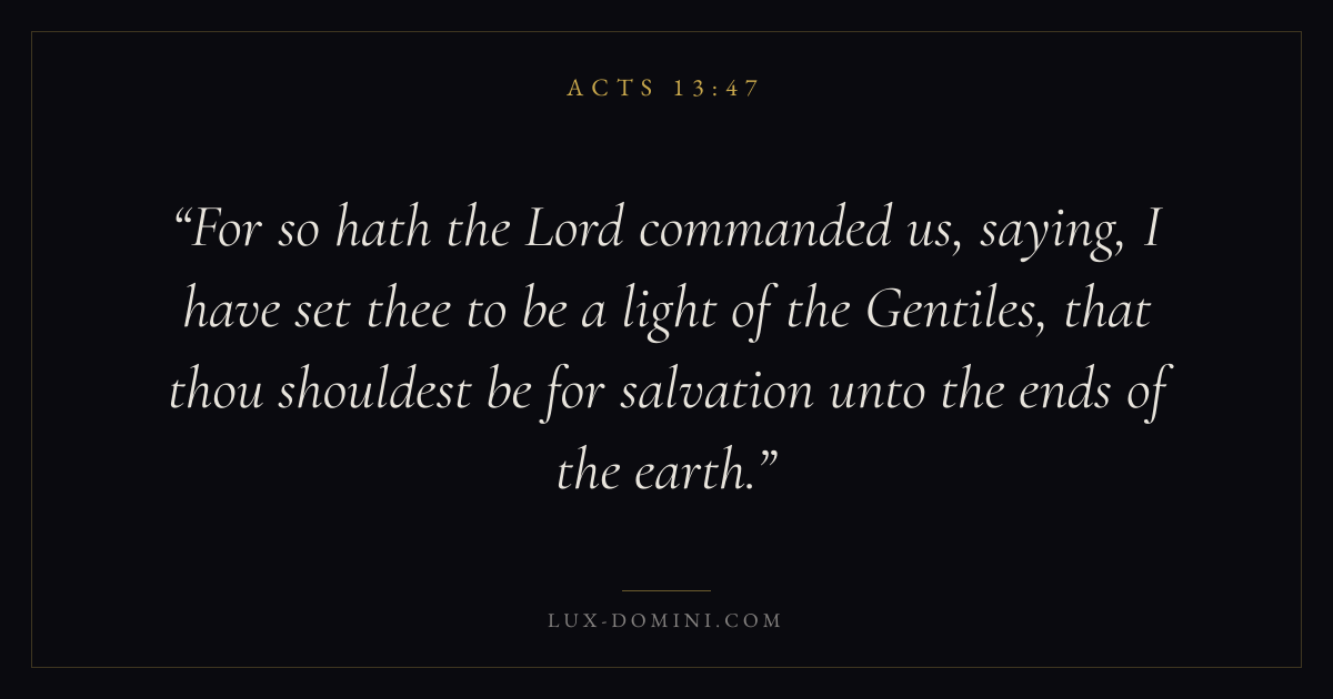 For so hath the Lord commanded us, saying, I have set thee to be a light of the Gentiles, that thou shouldest be for salvation unto the ends of the earth.
