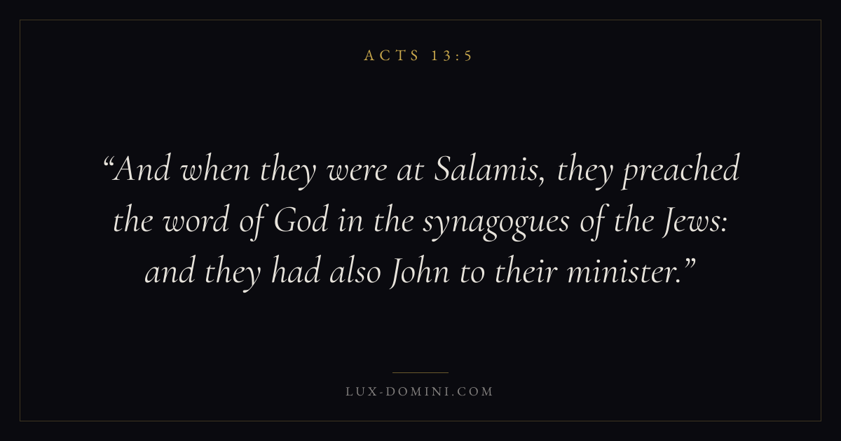 And when they were at Salamis, they preached the word of God in the synagogues of the Jews: and they had also John to their minister.