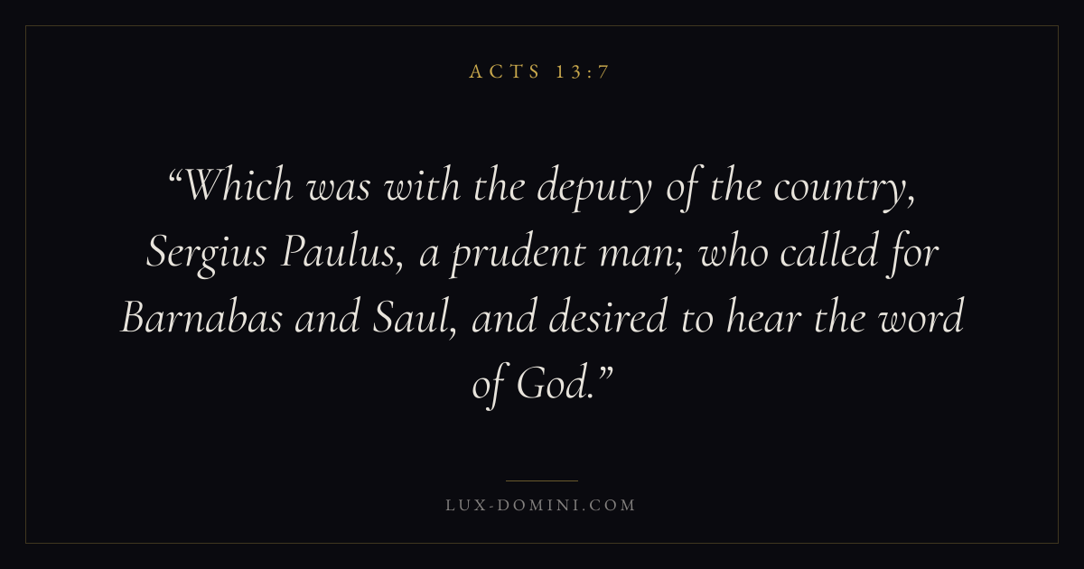 Which was with the deputy of the country, Sergius Paulus, a prudent man; who called for Barnabas and Saul, and desired to hear the word of God.