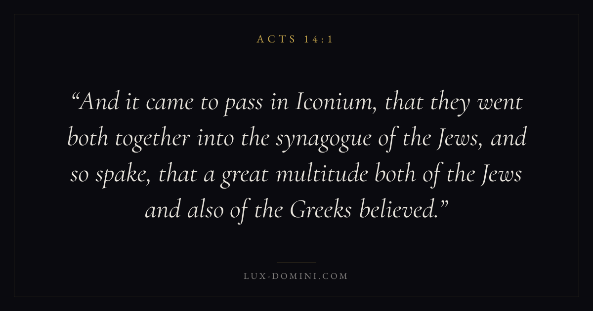 And it came to pass in Iconium, that they went both together into the synagogue of the Jews, and so spake, that a great multitude both of the Jews and also of the Greeks believed.