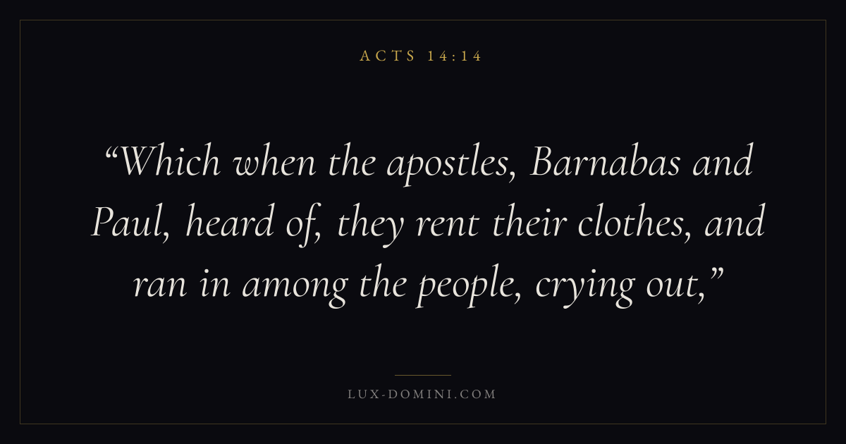Which when the apostles, Barnabas and Paul, heard of, they rent their clothes, and ran in among the people, crying out,