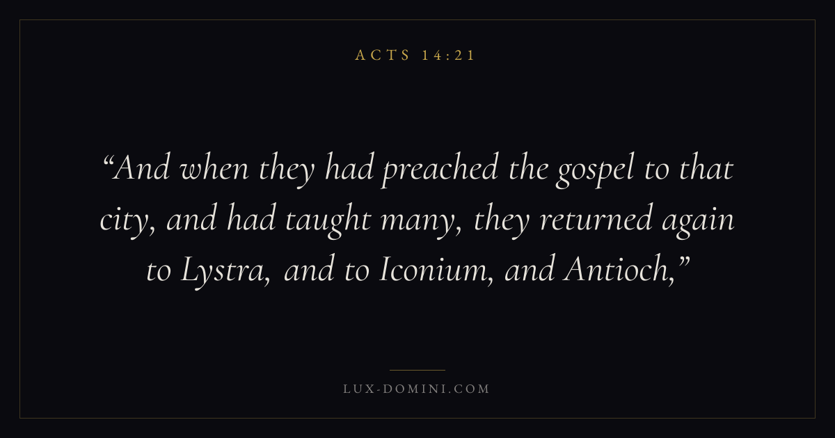 And when they had preached the gospel to that city, and had taught many, they returned again to Lystra, and to Iconium, and Antioch,