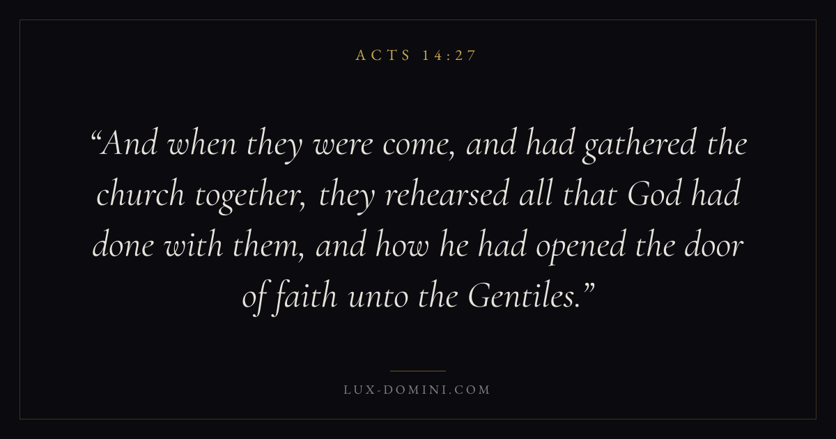 And when they were come, and had gathered the church together, they rehearsed all that God had done with them, and how he had opened the door of faith unto the Gentiles.