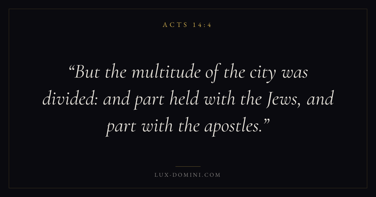 But the multitude of the city was divided: and part held with the Jews, and part with the apostles.
