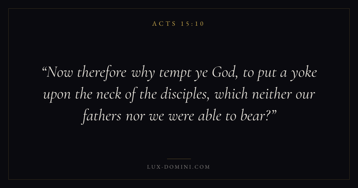 Now therefore why tempt ye God, to put a yoke upon the neck of the disciples, which neither our fathers nor we were able to bear?