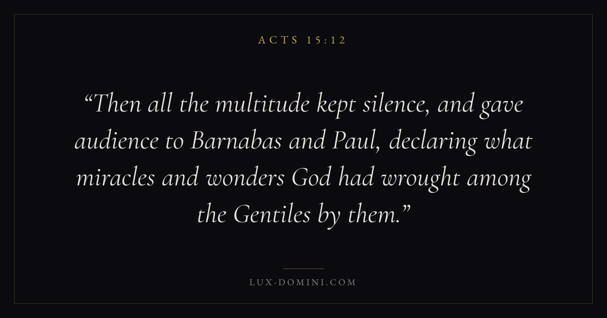 Then all the multitude kept silence, and gave audience to Barnabas and Paul, declaring what miracles and wonders God had wrought among the Gentiles by them.