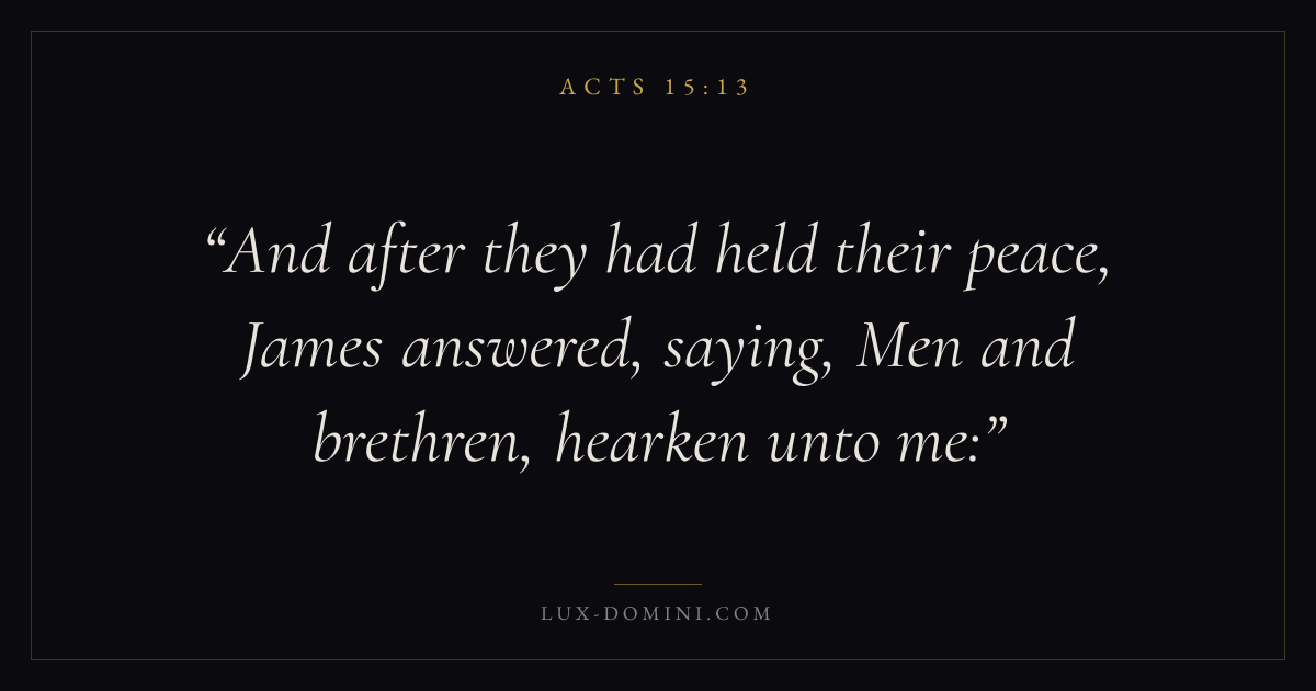 And after they had held their peace, James answered, saying, Men and brethren, hearken unto me: