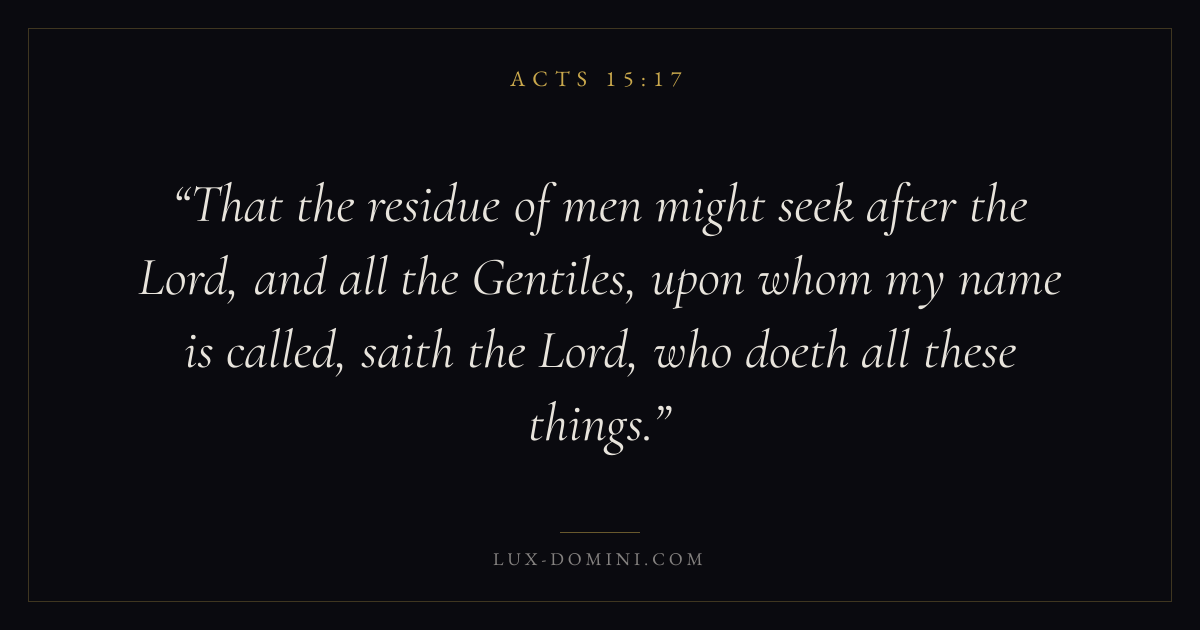 That the residue of men might seek after the Lord, and all the Gentiles, upon whom my name is called, saith the Lord, who doeth all these things.