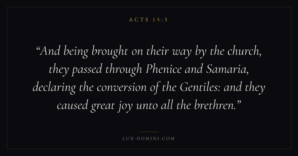 And being brought on their way by the church, they passed through Phenice and Samaria, declaring the conversion of the Gentiles: and they caused great joy unto all the brethren.