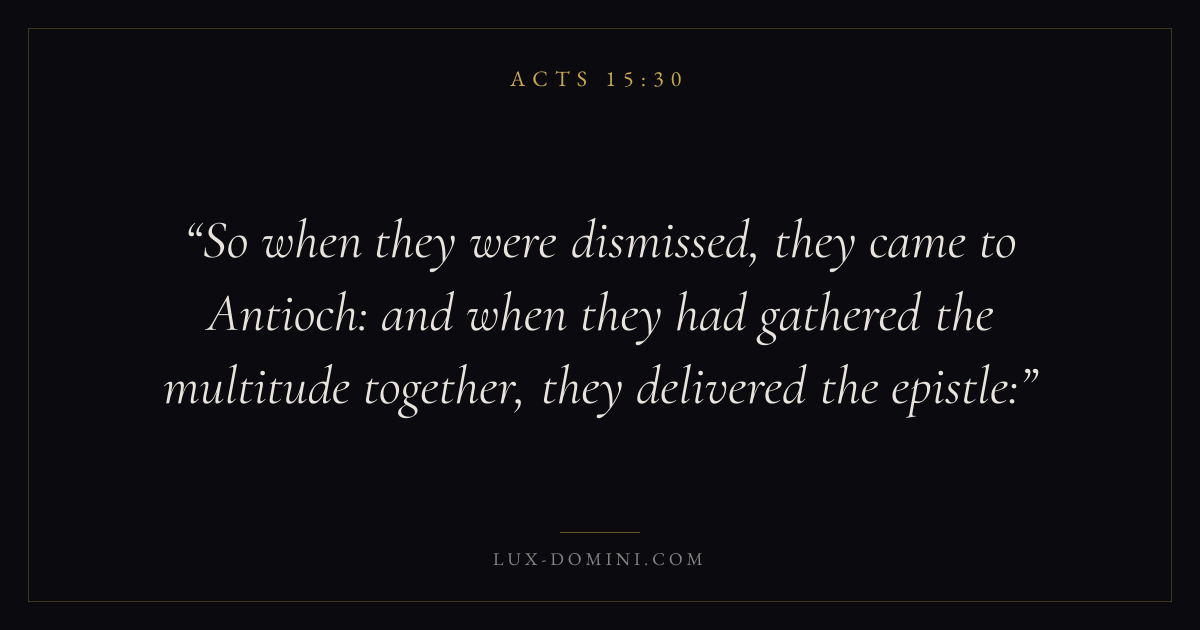So when they were dismissed, they came to Antioch: and when they had gathered the multitude together, they delivered the epistle:
