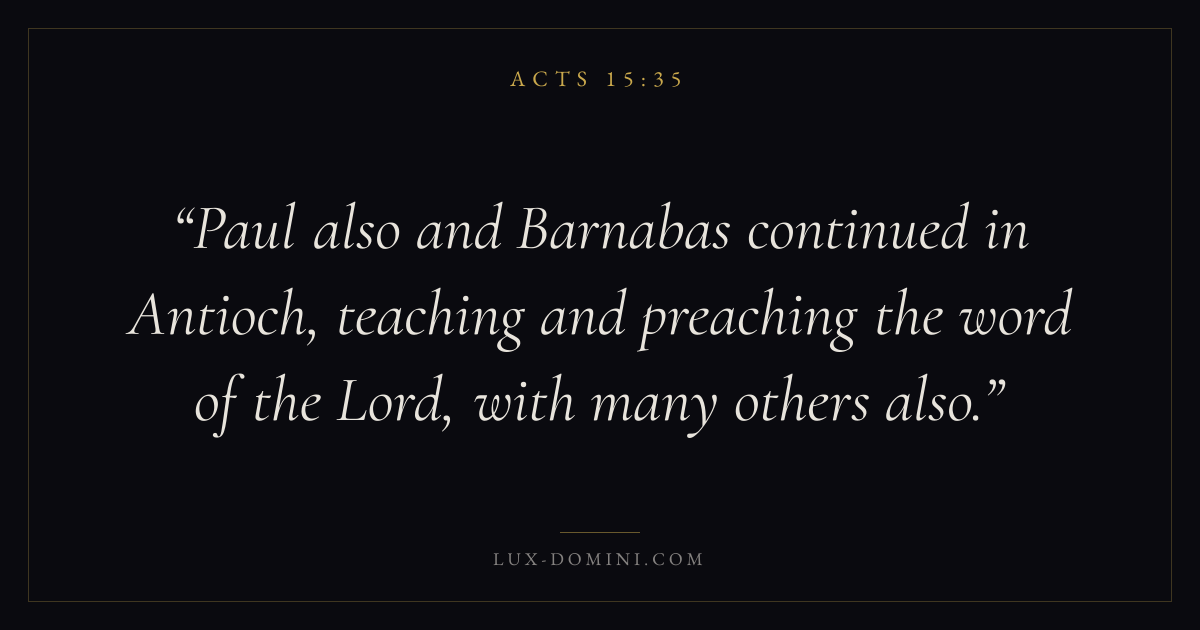 Paul also and Barnabas continued in Antioch, teaching and preaching the word of the Lord, with many others also.