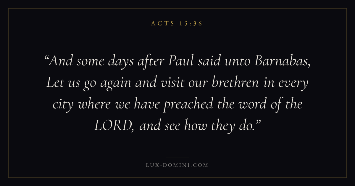 And some days after Paul said unto Barnabas, Let us go again and visit our brethren in every city where we have preached the word of the LORD, and see how they do.